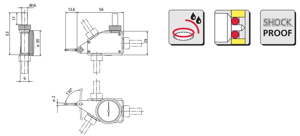 MarTest測桿在與表盤平行的位置擺動,球軸承支持雙桿,滑動離合器提供超載保護(hù)