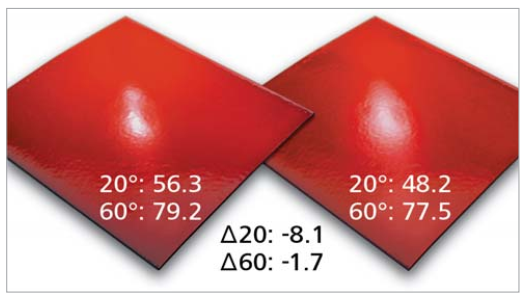20°角測(cè)量的讀數(shù)能更清楚地顯示這兩塊樣板的差異。 |