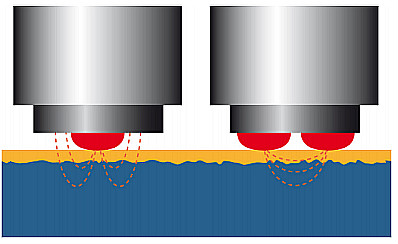 左:?jiǎn)斡|點(diǎn)探頭; 右:雙觸點(diǎn)探頭