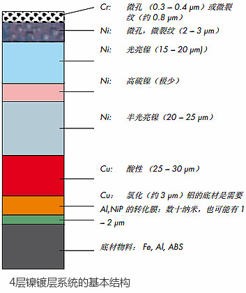 STEP Test 是在允許腐蝕的情況下用來同時(shí)測(cè)量電位差和多層鎳的鍍層厚度, 該方法是這個(gè)應(yīng)用領(lǐng)域的標(biāo)準(zhǔn)。 多層鎳鍍層的品質(zhì)控制需要能在電鍍完成后立刻檢查厚度和電位差的儀器。 COULOSCOPE CMS2 STEP 就是為這個(gè)目的而設(shè)計(jì)的,它操作簡單,參比電極使用起來也不復(fù)雜,非常適合電鍍工廠苛刻環(huán)境下的這種應(yīng)用。電鍍鎳層用作電解保護(hù)和提高機(jī)器表面屬性,如硬度等。特別是汽車工業(yè)中,電鍍鎳部件在防腐蝕方面要滿足很高的要求。單一鎳層無法滿足該要求。因此,目前正在開發(fā)非常復(fù)雜的鍍層系統(tǒng),其中包含兩層、三層甚至四層鍍鎳層,還有鉻或銅鍍層。