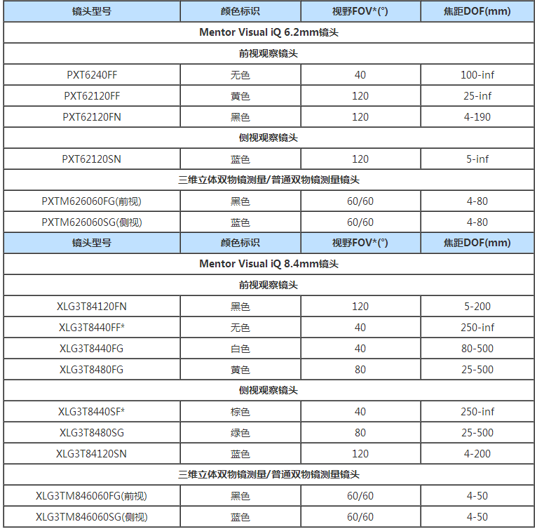 Mentor Visual iQ工業(yè)視頻內(nèi)窺鏡技術(shù)參數(shù)之?dāng)z像頭