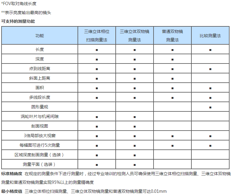 ? 采用3D相位測(cè)量(6.1 mm直徑探頭)或立體測(cè)量(6.1mm或4mm直徑探頭)