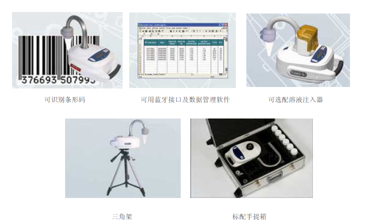 11.可選配件:條形碼讀數(shù)器;數(shù)據(jù)傳輸及管理系統(tǒng)(藍(lán)牙接口,數(shù)據(jù)管理軟件);溶液注入器;三角支架
