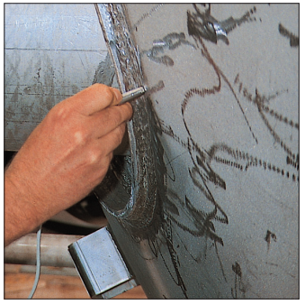 化學(xué)和石油化工行業(yè)越來(lái)越多地使用雙相鋼,例如:圖1和圖2中的鍋爐容器就是用高防腐性能的雙相不銹鋼制造的。如果焊縫處的鐵素體含量過(guò)低,受到張力或發(fā)生振動(dòng)時(shí)容易破裂。然而,在焊接雙相鋼時(shí), 由于焊接添加劑或熱處理不當(dāng),焊縫處的鐵素體含量非常容易超標(biāo)。只有現(xiàn)場(chǎng)檢測(cè)才能確保處理過(guò)程不會(huì)改變*佳的鐵素體含量,防止機(jī)械性能或防腐蝕性能的下降。 ¬使用FERITSCOPE FMP30容易準(zhǔn)確地測(cè)量鐵素體含量。將探頭放置在樣品表面后,讀數(shù)會(huì)自動(dòng)顯示并存儲(chǔ)在儀器中。探頭也可以放置在難以觸及的區(qū)域。只需按一下按鈕即可觸發(fā)測(cè)量。這是在管道,鉆孔或凹槽中進(jìn)行測(cè)量的理想選擇。