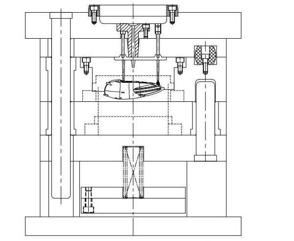兩套模胚的雙色模具,具有兩個(gè)完全相同的后模,而兩個(gè)前模型腔是不同的,用于注射不同的物料。這就要求兩套模胚完全相同,由于需要互換配合,模胚需要具備很高的精度。一般要求模具的加工精度在0.01以內(nèi)。注意模胚的導(dǎo)柱導(dǎo)套孔仍然需要基準(zhǔn)角偏置,以防加工時(shí)出錯(cuò),和普通單色模具一樣。另外一點(diǎn)需要注意的是模具必須設(shè)計(jì)成三板模的形式,在一次注塑后,二次注塑前,水口料需要及時(shí)分離。